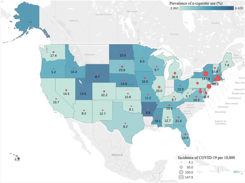 Now Dongmei Li and colleagues have presented national data showing that states in with higher e-cigarette use had more COVID-19 cases and deaths. In their paper, “The association between statewide vaping prevalence and COVID-19,” they found that, after controlling for smoking and several other risk factors, states with higher e-cigarette use in 2018 had more COVID-19 in 2020.