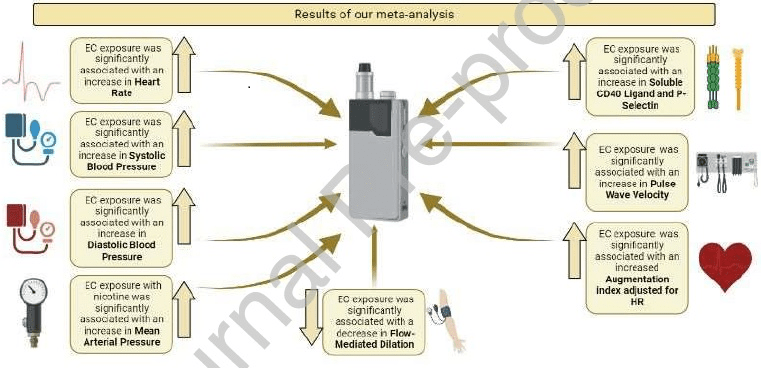 Siddiqi TJ, Rashid AM, Siddiqi AK, Anwer A, Usman MS, Sakhi H, Bhatnagar A, Hamburg NM, Hirsch GA, Rodriguez CJ, Blaha MJ, DeFilippis AP, Benjamin EJ, Hall ME. Association of Electronic Cigarette Exposure on Cardiovascular Health: A Systematic Review and Meta-Analysis. Curr Probl Cardiol. 2023 Apr 21:101748. doi: 10.1016/j.cpcardiol.2023.101748. Epub ahead of print. PMID: 37088177. It is available here.