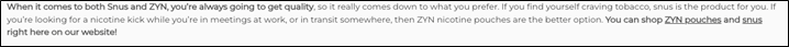 Although PMI announced on June 17, 2024, that it would suspend online sales of Swedish Match’s ZYN pouches on its ZYN.com website,[11] as of June 19, 2024, Swedish Match’s General Snus website[12] directed consumers to shop online with a link to Northerner.com where they could purchase ZYN:
