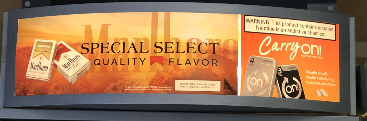 In fact, Philip Morris is still advertising dual use. It’s just more subtle these days. Here’s an ad I saw today for Marlboro cigarettes and On! nicotine pouches: