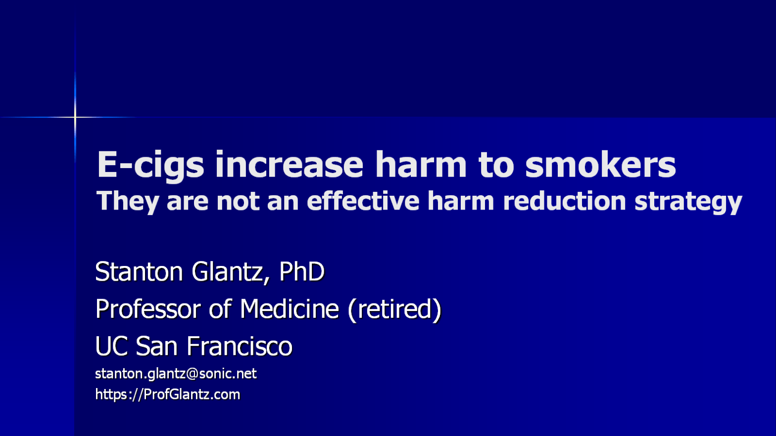 E-cigarettes increase harm to smokers, so should not be promoted as a harm reduction strategy (in 10 slides)