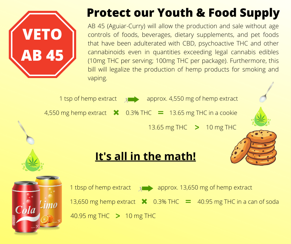 The California Legislature recently passed two bad bills designed to promote the cannabis industry at the expense of public health. One, AB 1302, would allow cannabis billboards along highways and the other, AB 45, greatly expands permission to add CBD and THC to foods and pet supplies. Under AB 45’s weak rules, hemp sodas orContinue reading “Calif legislature passed two bills prioritizing cannabis company profits; health groups urging veto”