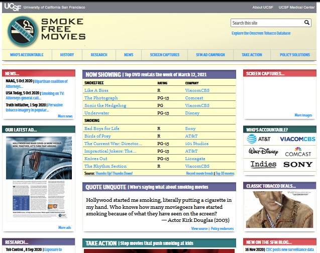 I ran the Smokefree Movies campaign from 2001 through my retirement from UCSF in 2020. This education/advocacy campaign put pressure on the motion picture industry to stop promoting tobacco to young audiences through specific policy changes. We advocated for these policies though paid advertising in the trade and general press and the Smokefree Movies website.Continue reading “Archival copies of Smokefree Movies and Smokefree Media websites are available”