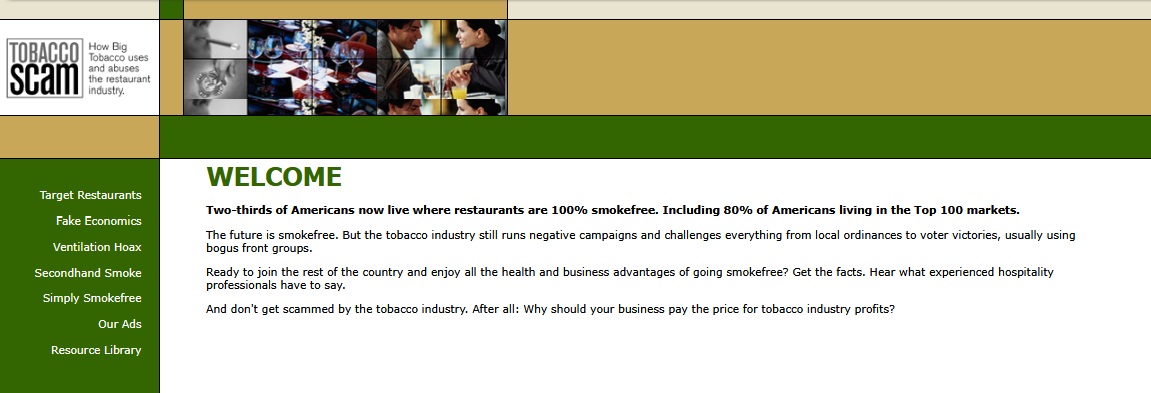 In 2002 I developed an educational campaign called Tobacco Scam designed to counter tobacco industry propaganda directed at restaurants and to expose the industry’s cooptation of the state and national restaurant associations. It was called “Tobacco Scam” because it highlighted how the tobacco companies were scamming restaurants and bars into opposing smokefree laws based onContinue reading “Archived copy of Tobaccoscam website and ads on smokefree hospitality is available”